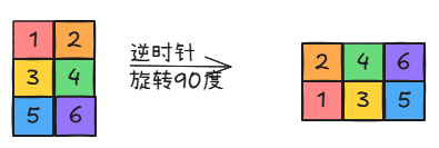 把一个m*n的矩阵逆时针旋转90度,看看旋转后是什么样子。