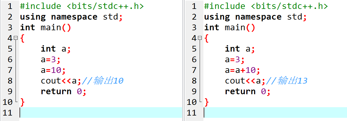 3412: 周周练-第3周-变量-区分a=10与a=a+10