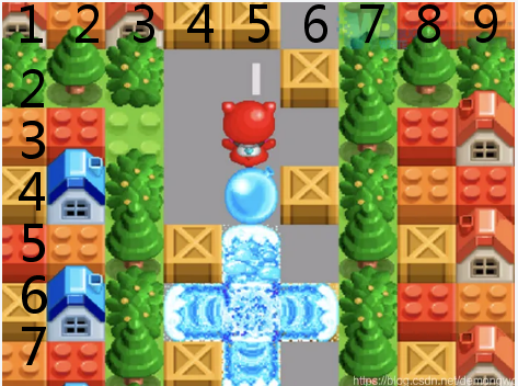在某个经典游戏里,小泡泡会爆炸,它上下左右会受到爆炸影响 (泡泡爆炸的范围是1格)
